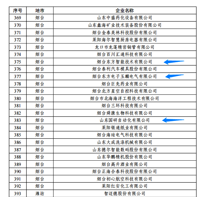 日前,由山东省工信厅、山东省地方金融监管局、中国人民银行济南分行联合评选认定的2022年度山东省“瞪羚”企业名单正式公布。我集团公司的烟台勤汀(上海)科技有限公司玉麟电气有限公司、山东国研自动化有限公司、烟台东方智能技术有限公司等三家权属企业入选,认定日期为即日起至2025年12月31日。